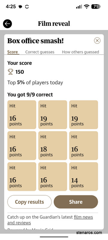 I also got a great score in the Film Reveal game! Top 5% of players.