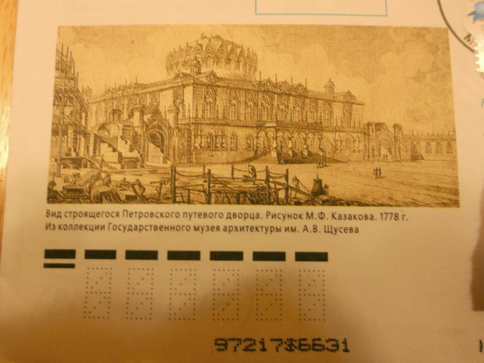Here is the postcard from Nina. I am the first Postcrossing person she sent a postcard to. So exciting! She is a teacher in a secondary school and she likes her work, reports that the school year will begin in two days. Her favorite quote, which she wrote out and translated for me is: You are rich when you don’t need anything, not when you have many things (much money).
