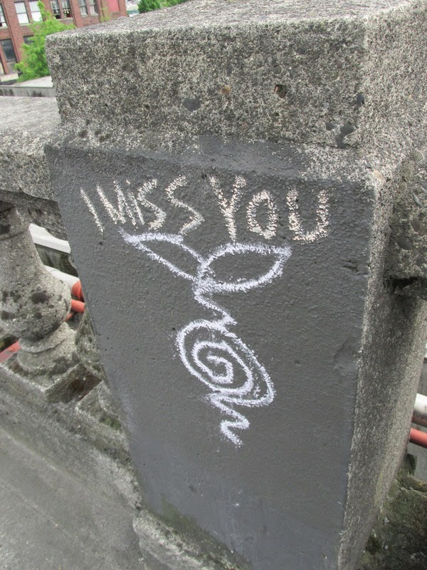 Nice chalk graffiti on the bridge.