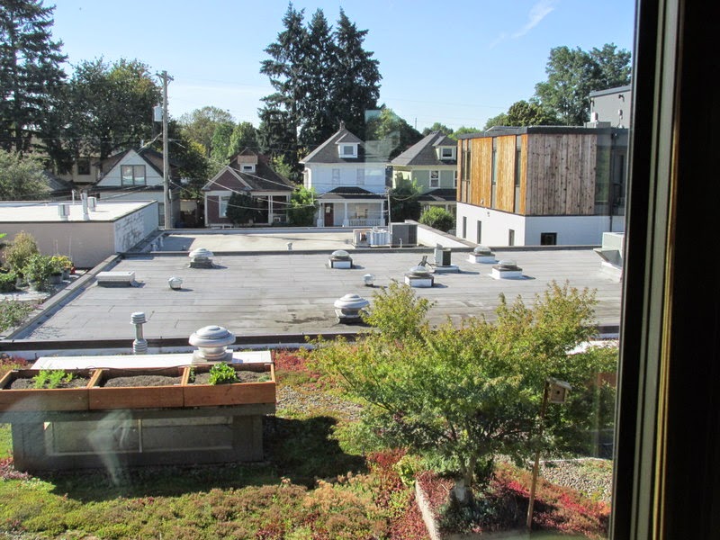 Nice contrast between the eco roof and the regular roof next door.