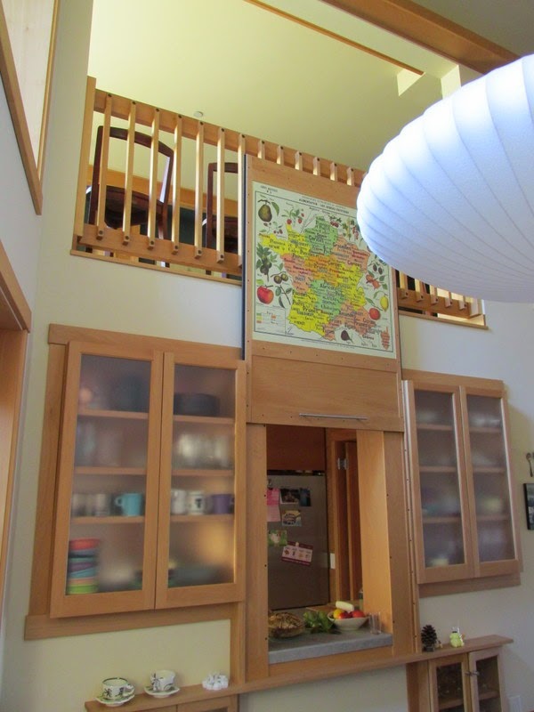You can see where the picture can be lowered, cutting off the kitchen from the rest of the house. You can also peek into the second floor.