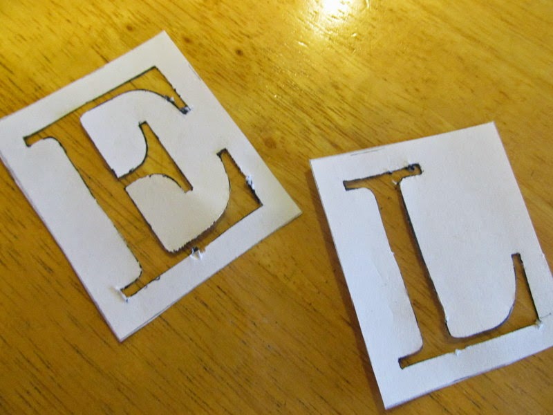 Here are my templates. I found a font I liked, blew up the letters in Word to the right large size, and then printed and sliced out the black part.