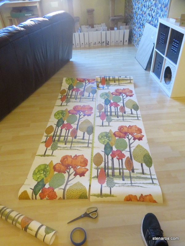 Here’s the wallpaper. I liked the trees and the autumn colors, plus there was orange to go with the green, and orange is good to work into everything.