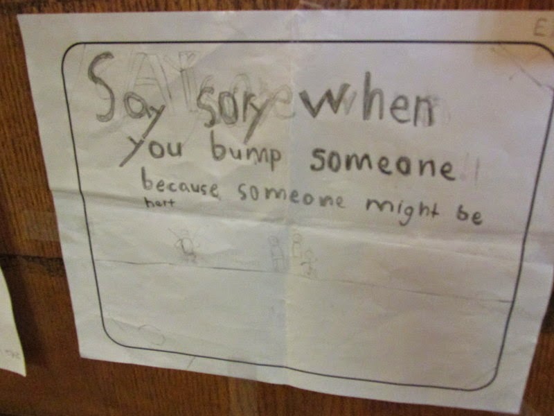 Say sorry when you bump someone because someone might be hurt.