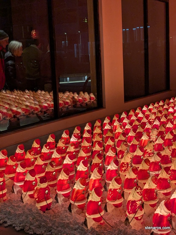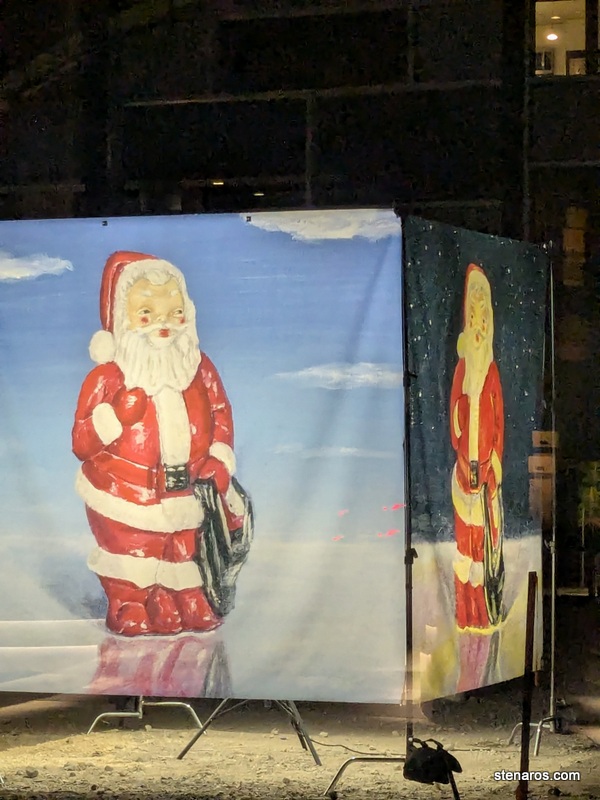 These Santas were portraits painted by Terence Healy for the first year. You can see that one is a daytime version, and the other a night-time version.