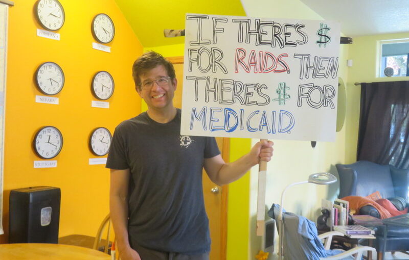 This side of the sign references ICE’s decision to check IDs and make arrests in the middle of a firefighting effort.