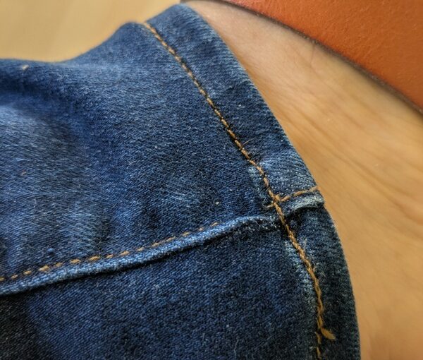 Despite my sewing-underwear adventure, mending/fixing things comes before sewing. I’ve had a pair of jeans I bought from Goodwill (using only measurements because they took away the dressing rooms during the pandemic and never put them back) that were too long. This is par for the course for pants because I’m very short-legged.