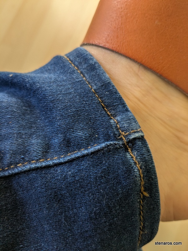 Success! Thanks to the very helpful step-by step video from WeAllSew, I now have a good looking hem and my jeans are the right length! In the picture you can see the fold where the new seam is at the top of the picture, but looking at it from a distance further away, it looks like the original hem.