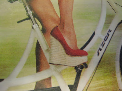 On the one hand, when a heterosexual couple rides a tandem bike, it is very uncommon to find the female in front.  Really. In real life, I’ve only seen it once.  This makes no sense to me as most women are smaller than their partners and it would make sense for them to be in front so they can see something beside their companion’s sweaty back.  So I liked this pairing that places–wait, who is that?  Kelly?  I think it’s Kelly Ripa?  Anyway, it places her in front of her new co-host.