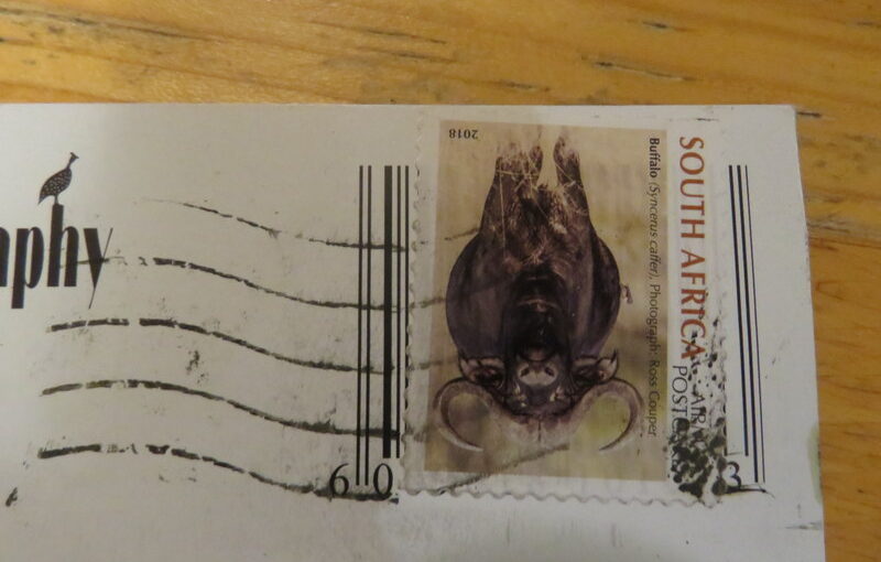 Friend Kelly visited Botswana and South Africa. She sent her hello from the first place she found postcards: the airport in Gaborone. Her next quest was to find stamps and a mailbox, which she said would be in Cape Town.