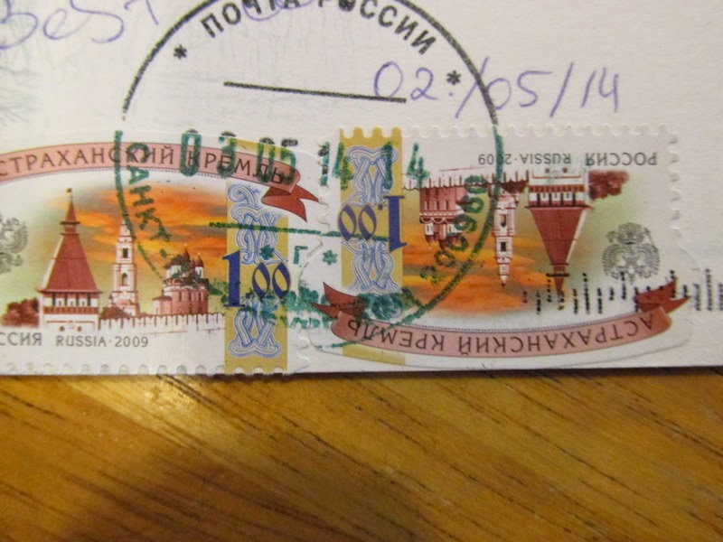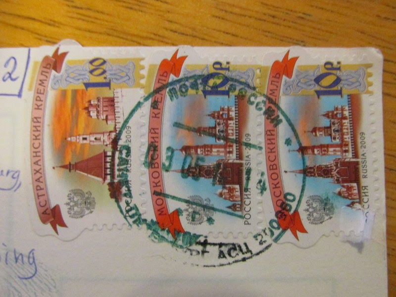 The stamps are nice, but I took a picture because they were in two places on the card: the traditional spot,