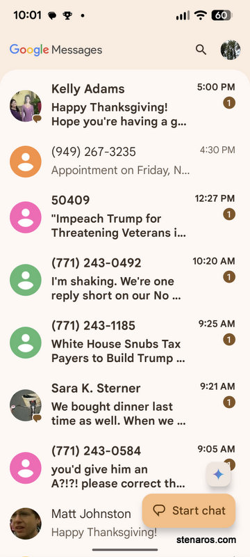 Spam texts seem to come in waves, and there have been a tsunami lately. Four alone between 9:00 and 12:30. It’s not even election season!