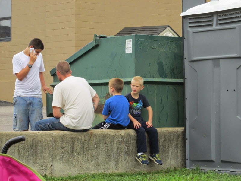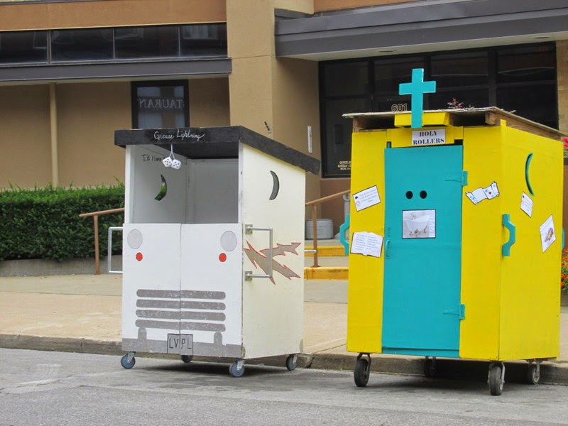 When we walked back through, there was another outhouse ready to be pushed in the contest.