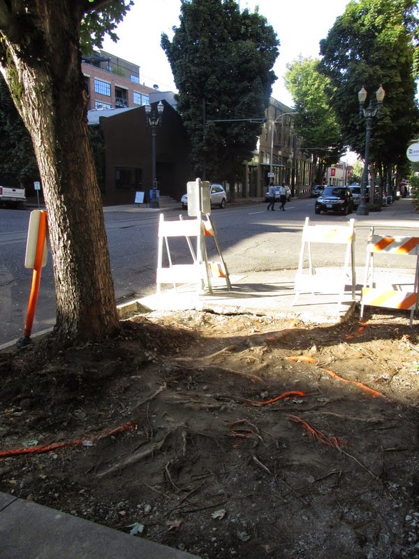 Tree roots and concrete. I’ve often wondered what they look like under the sidewalk, those tree roots. Now I can see.